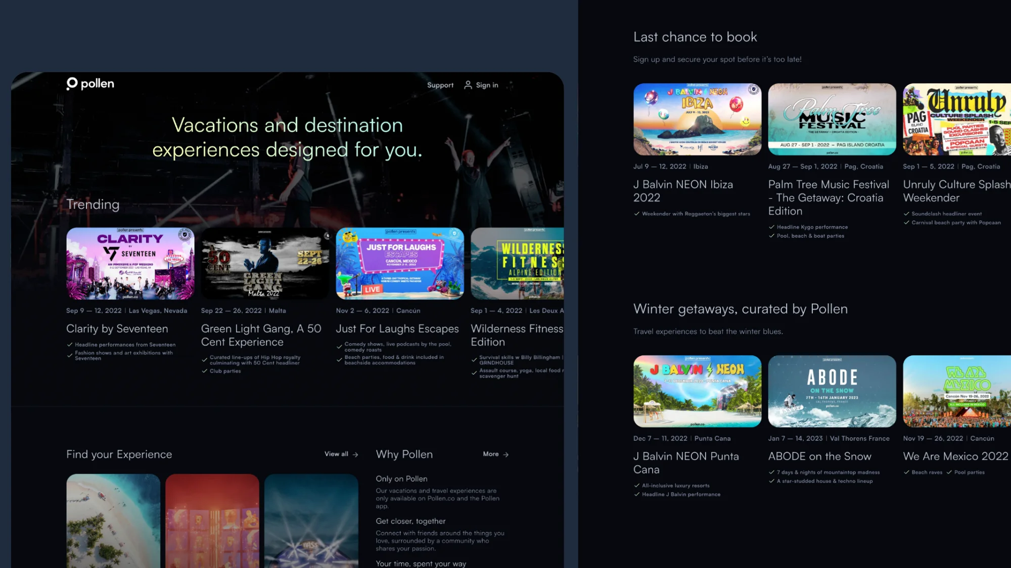 Was able to give each experience their own bespoke look and feel, yet the band identity and page layout uniform.