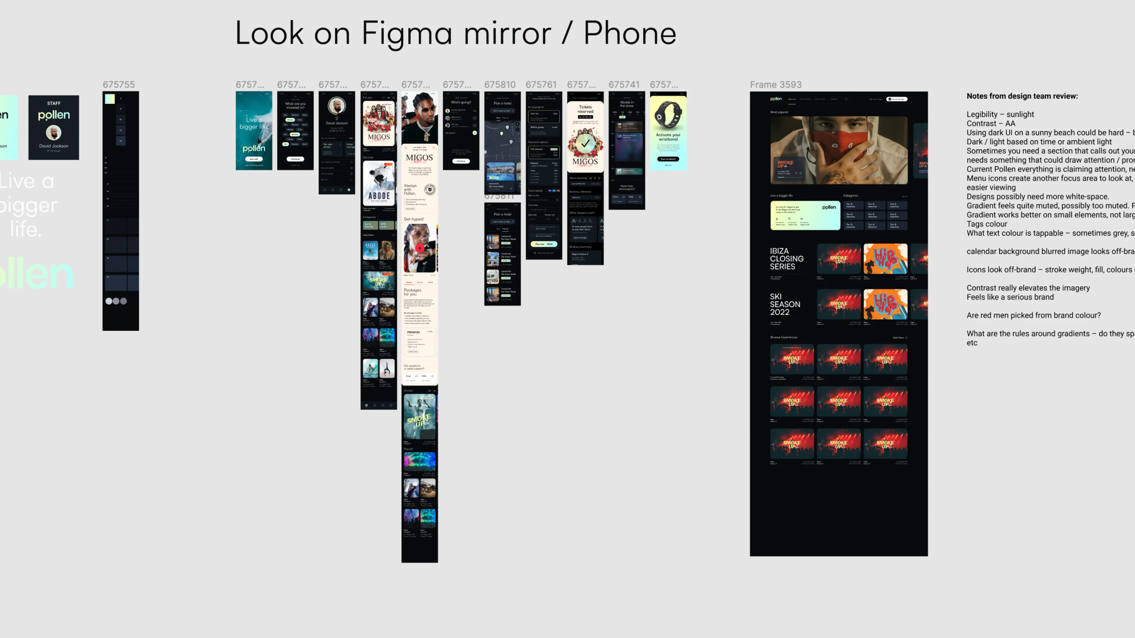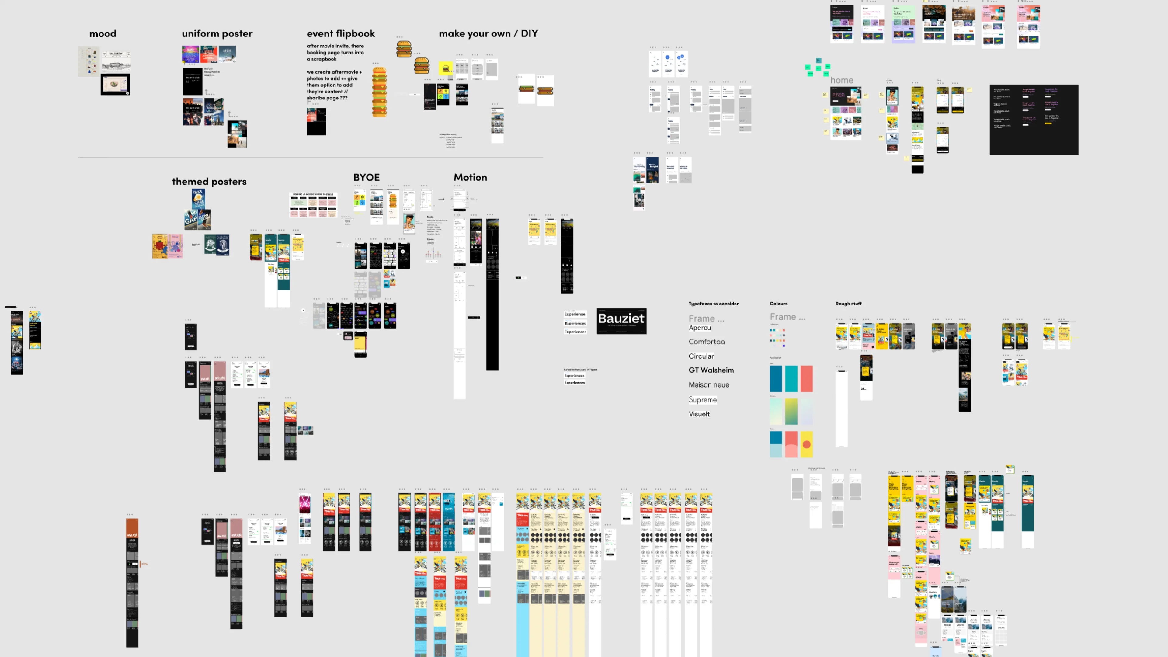 Workshops at a 2 weeks candence with the whole team, everything was up for play. Colors, types, shapes, layout, everything.